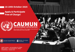 18–20 ოქტომბერს საგანმანათლებლო ღონისძიება CAUMUN 2025 (Caucasus Model United Nations) თბილისში კვლავ გაიმართება. წელს კონფერენციას მასპინძლობენ გივი ზალდასტანიშვილის სახელობის ამერიკული აკადემია (GZAAT) და ბრიტანულ-ქართული აკადემია (BGA). ღონისძიებაში მონაწილეობას მიიღებს 450-ზე მეტი დელეგატი და 30-ზე მეტი სკოლა. ჩატარების ადგილი: BGA-ისა და GZAAT-ის კამპუსებში, ლისის ტბის მიმდებარედ. ვინ შეუძლია რეგისტრაცია? რეგისტრაცია ღიაა IX-XII კლასების მოსწავლეთათვის. მონაწილეობა სრულად […]